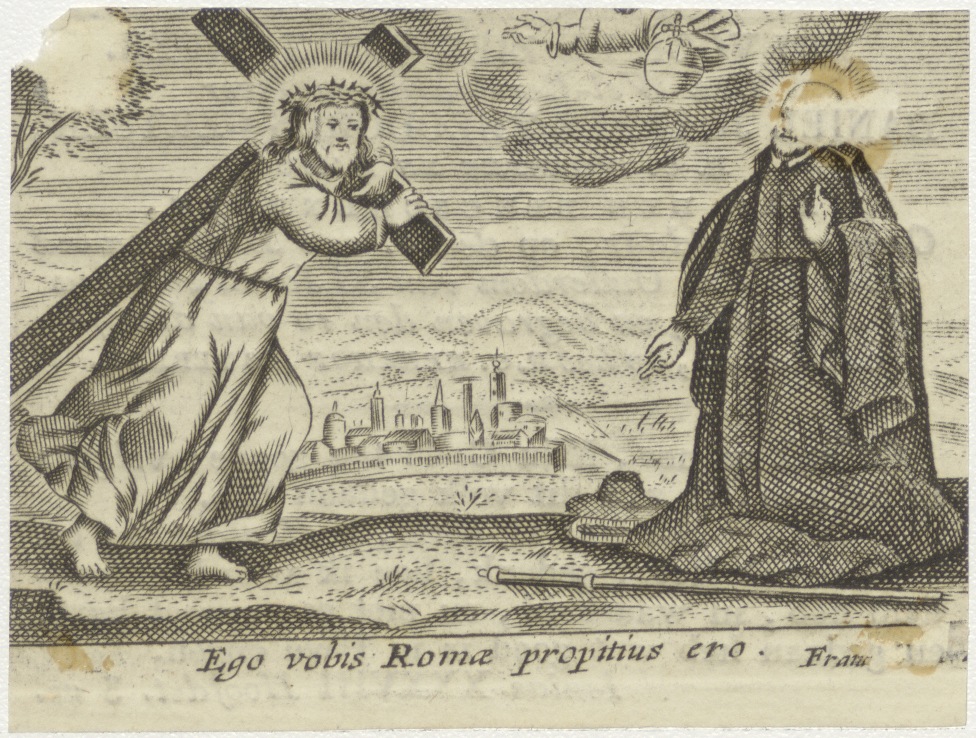 Christus met kruis en Jezuïet, kz. Religieus; bid vo...