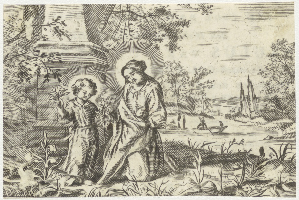 Maria met Christuskind in landschap, kz. Religieus; ...