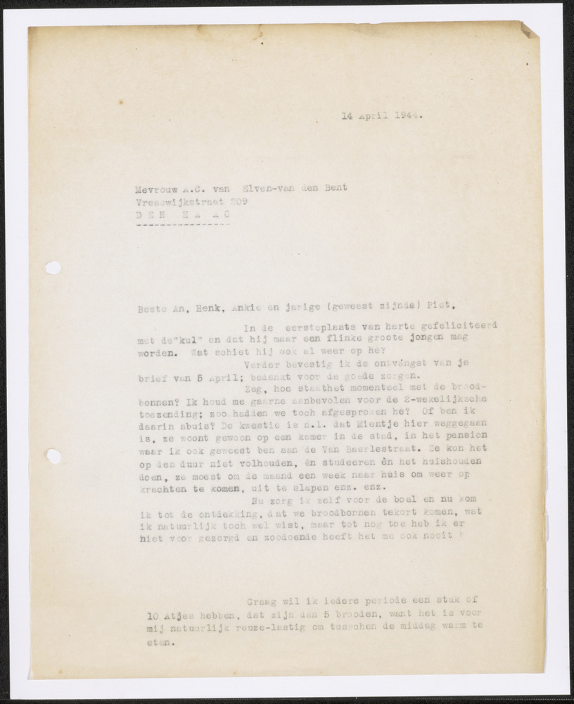 Brief, Den Haag 14 april'44, Beste Henk, An en Kinders