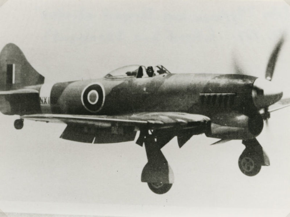Foto van Hawker Typhoon (Tempest?) met landingsgeste...