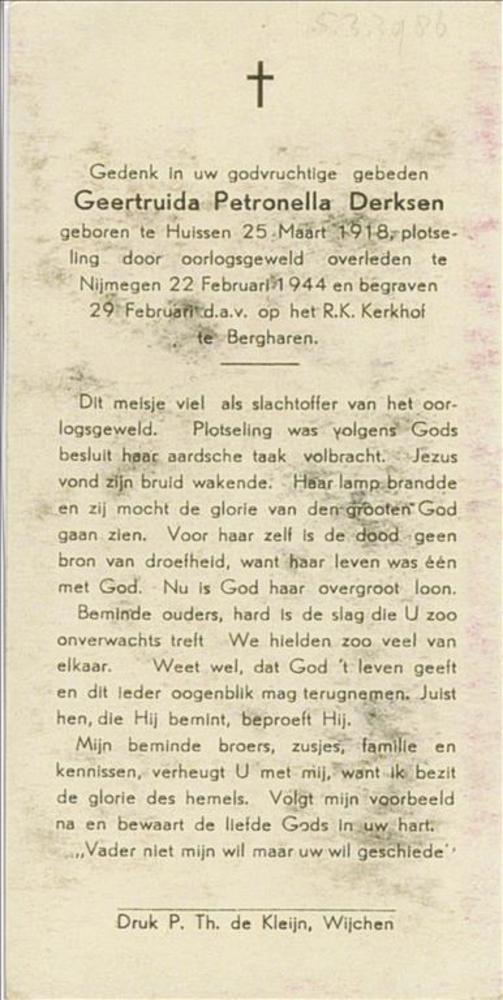 bidprentje (kopie) Geertruida Petronella Derksen