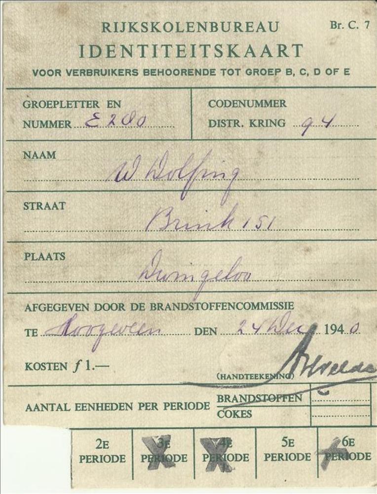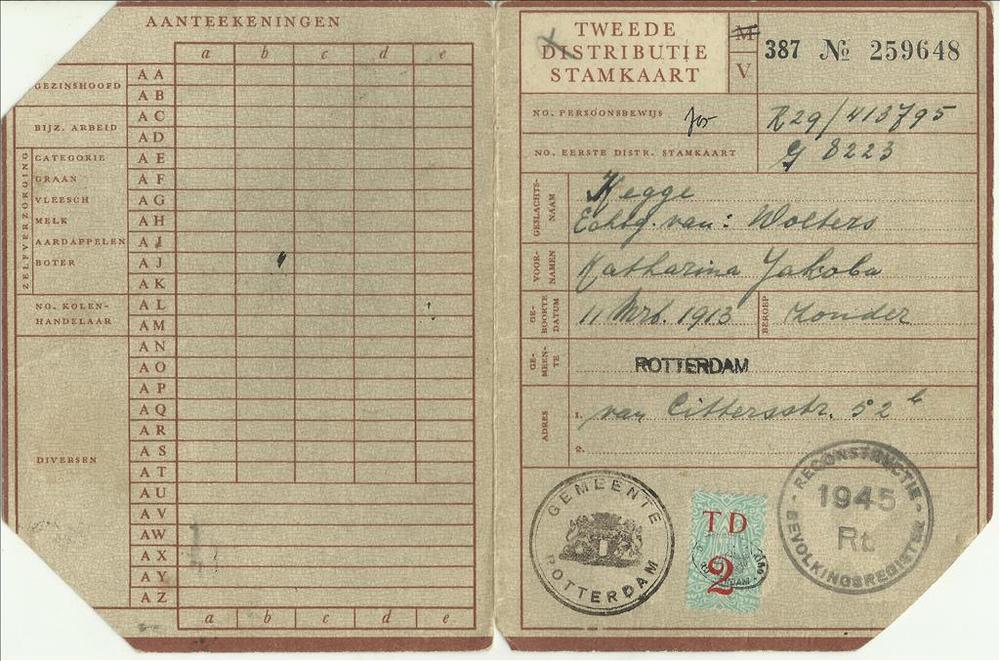Tweede Distributiestamkaart op naam van K.J. Kegge n...
