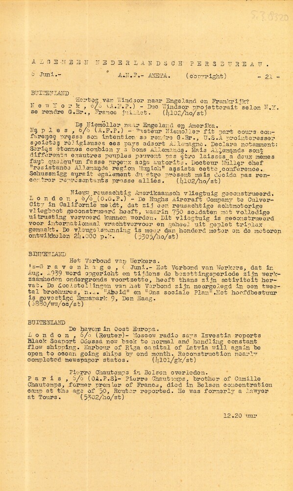 Vel: Algemeen Nederlandsch Persbureau, mededelingen,...