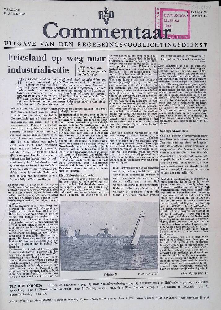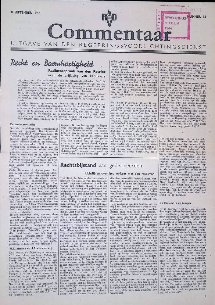 Commentaar, uitgave van de Regeringsvoorlichtingsdie...