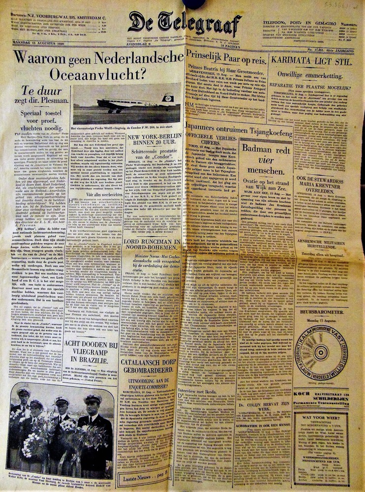 "De Telegraaf" van "Maandag 15 augustus 1938" "Avond...