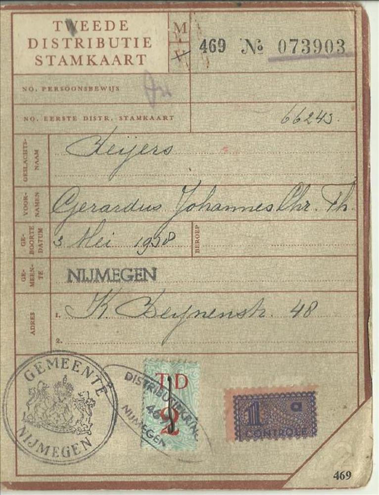 Tweede Distributiestamkaart op naam van G.J. Weijers