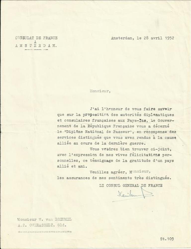 Brief van het Franse Consulaat te Amsterdam aan Dhr ...
