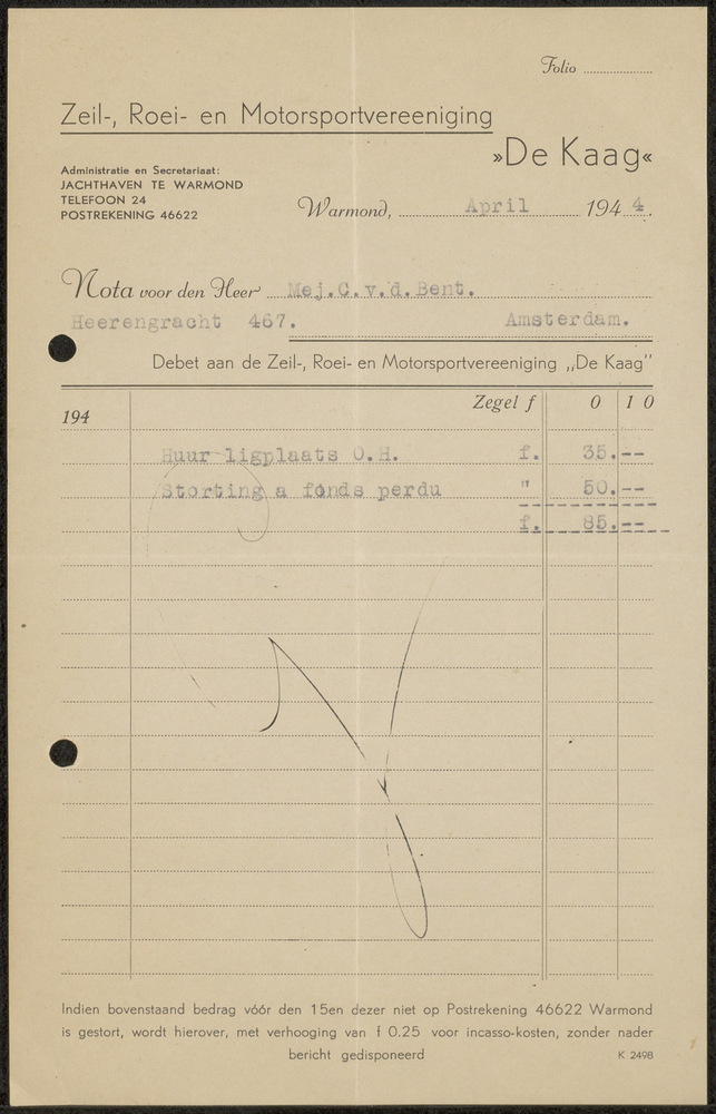 Correspondentie met de Zeil- Roei- en Motorsport ver...