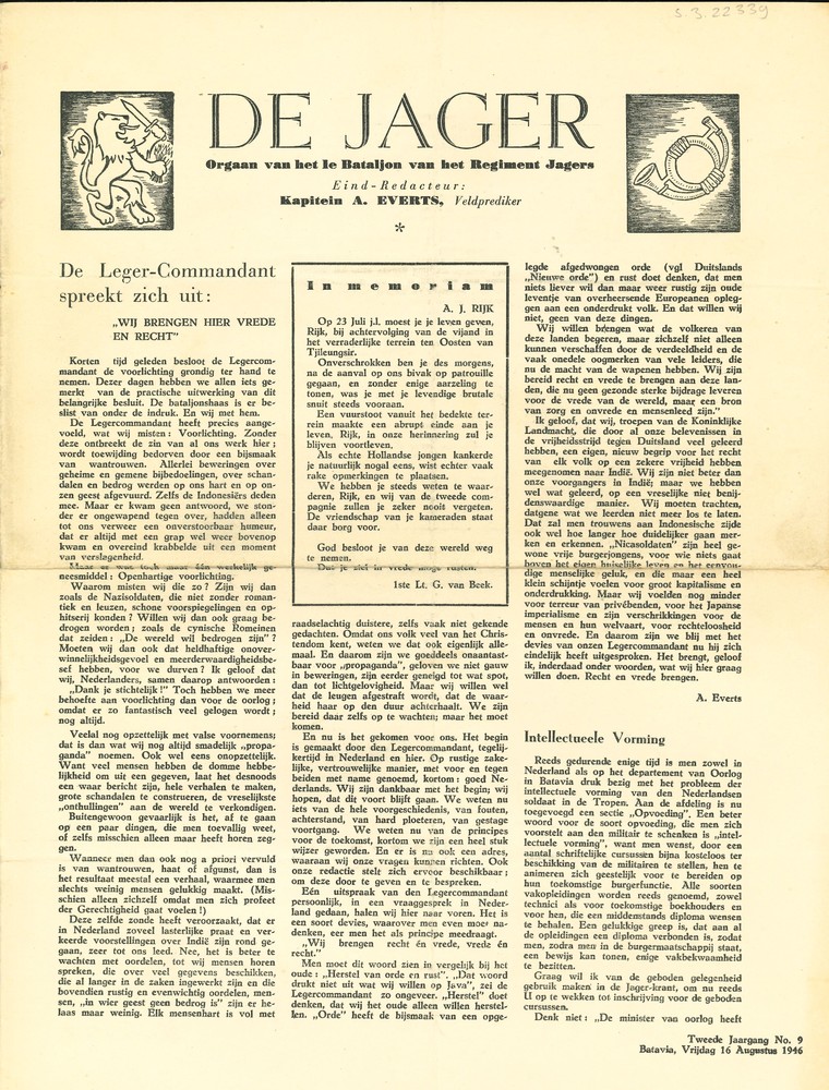 De Jager, 2de Jaargang, No 9, Batavia, 16 augustus 1946