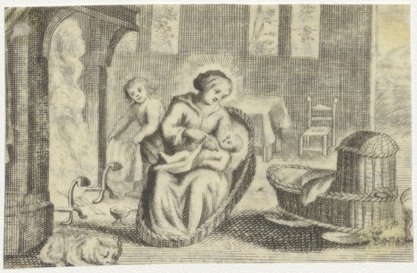 Maria met Christuskind, huiselijke scène, kz. Religi...