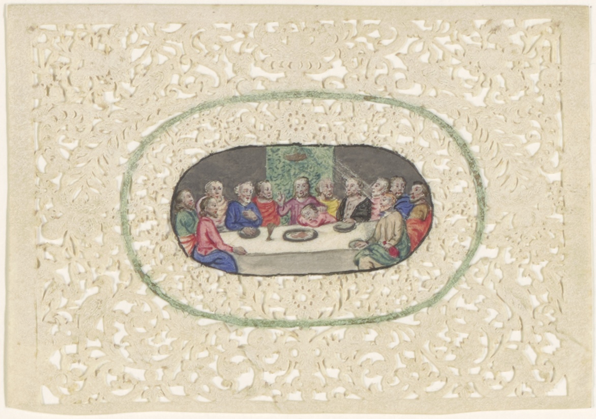 Kelk met H. Sacrament, ingekleurd, kz. tekst (?)