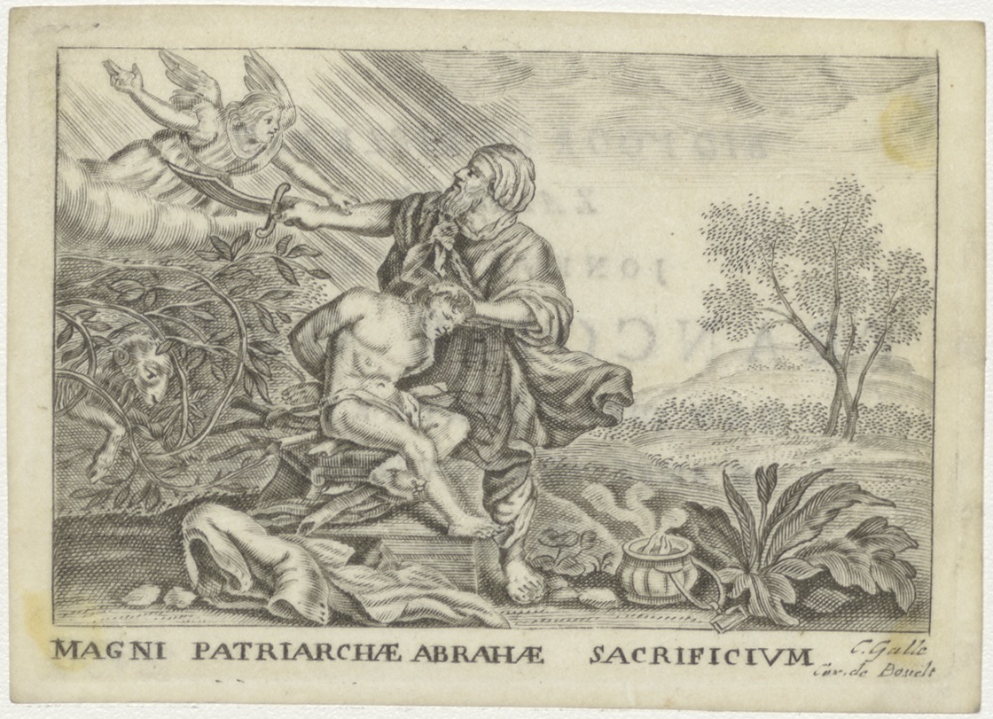 Offer van Isaak door Abraham, kz. bid voor ziel Fran...