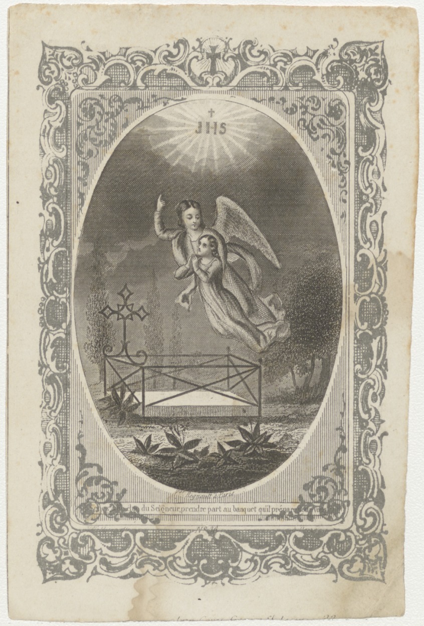 Engel op kerkhof, ingekleurd, kz. bid voor ziel van ...