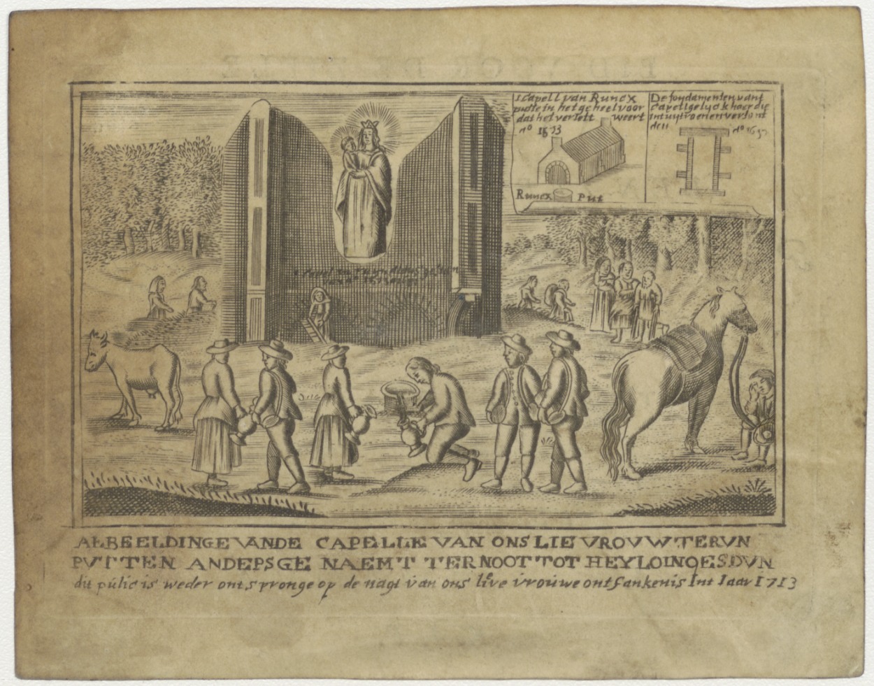 Kelk met hostie en vagevuur, ingekleurd, kz. oud Ned...