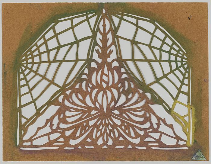 Groot kartonnen sjabloon, bloemmotief met spinnewebv...