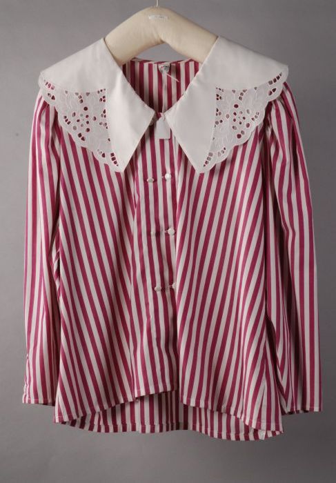 Katoenen blouse wit en roze gestreept met brede witt...