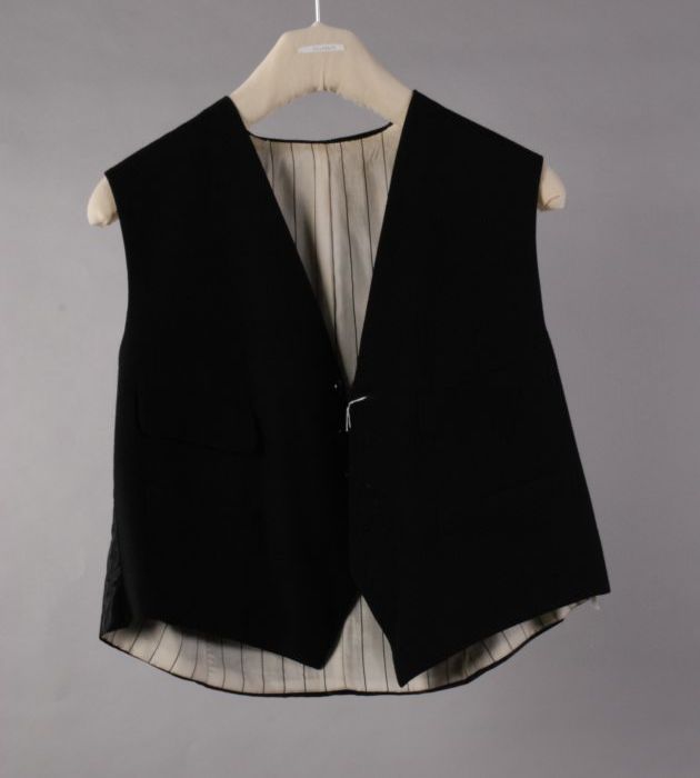 Driedelig rokkostuum, zwart wollen jacquet met vest ...