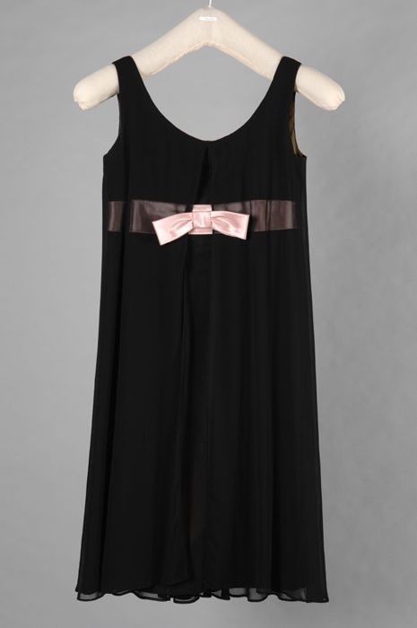 Zwarte avondjurk met roze satijnen strik