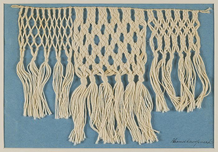Proefstuk, vier verschillende passementen in macramé...