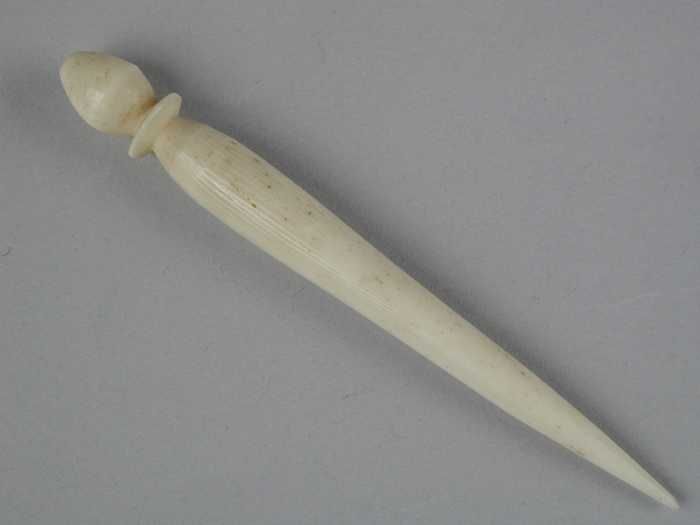 Haaknaald van been of ivoor met bewerkt handvat