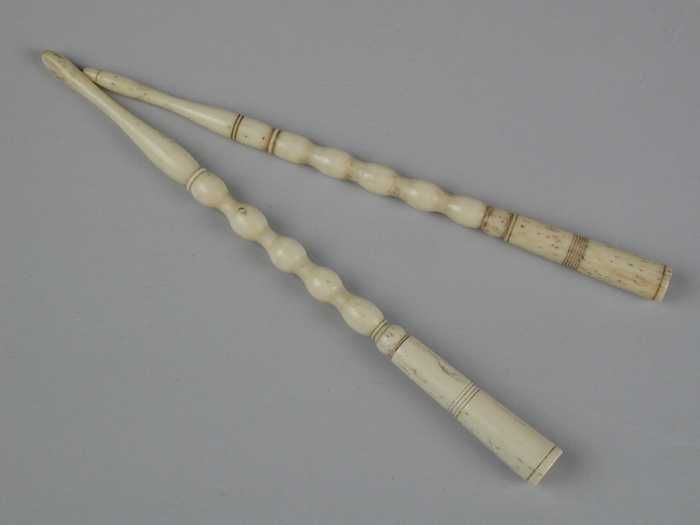 Lange dunne haaknaald van been of ivoor