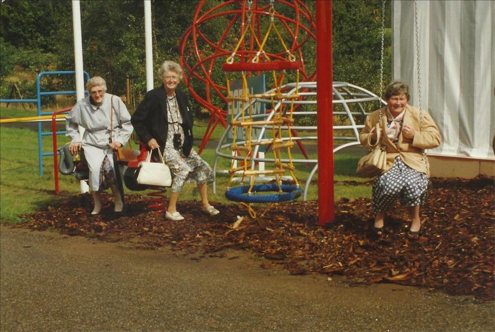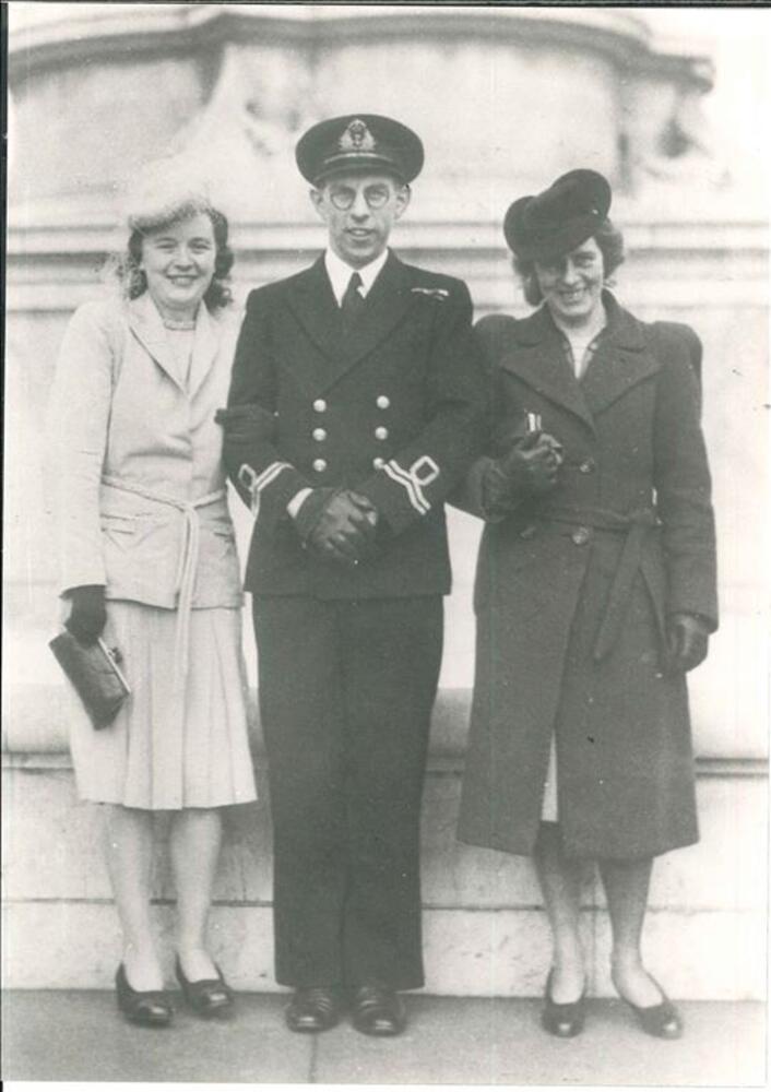 John Bridge met zij echtgenote en nog een vrouw, 3 m...