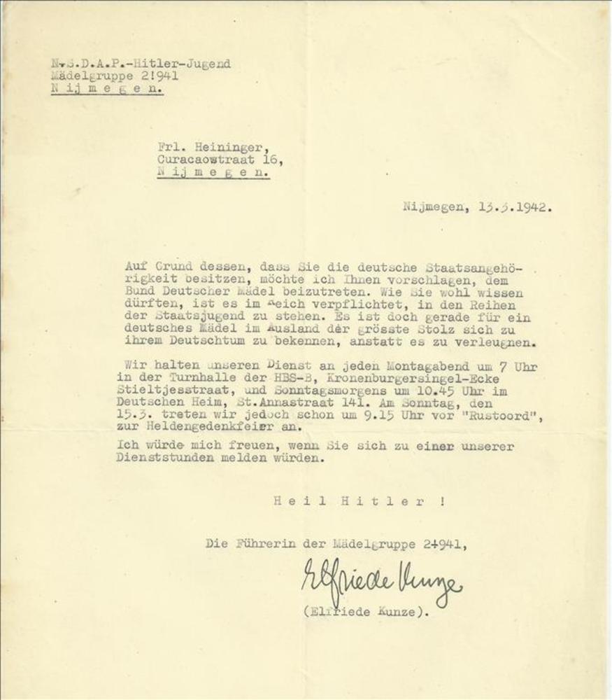 van NSDAP Hitler-Jugend Mädelgruppe te Nijmegen