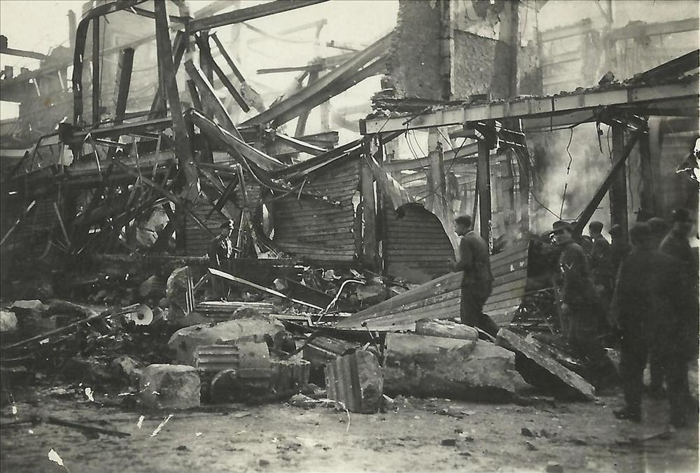 bombardement Nijmegen; ingestort gebouw met personen