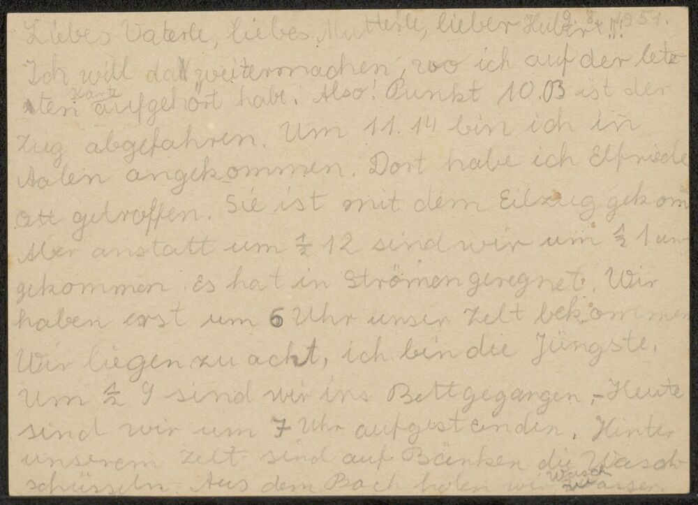 Briefkaart van Traute aan moeder (Ella) en vader (Hu...