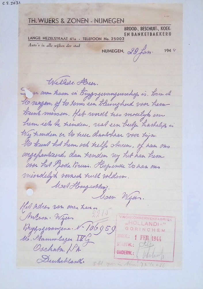 Brief van Th. Wijers en Zonen te Nijmegen, verzoek v...