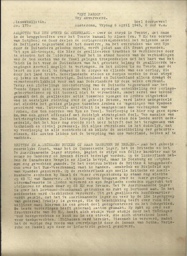 Trouw augustus 3 mei 1945 speciale uitgave voor Amst...
