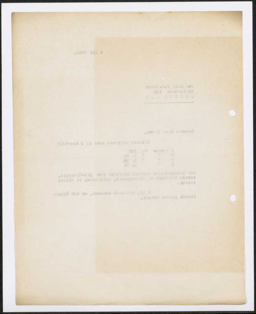 Brief van 4 mei 1944 aan Den Heer F.C. Kroon