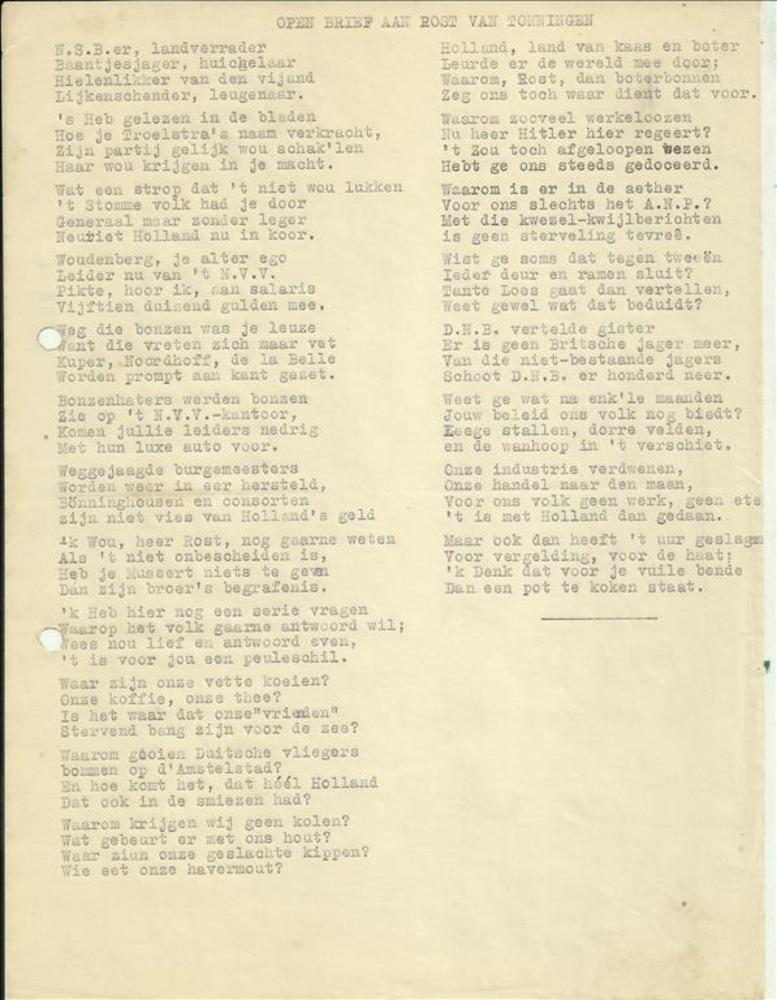 ILLEGALITEIT (Algemeen): Gestencild pamflet, twee ve...