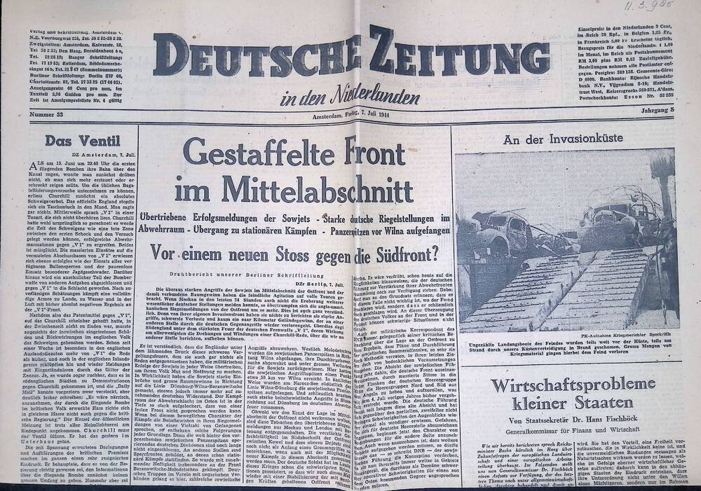 Deutsche Zeitung in den Niederlanden. 7 juli 1944.