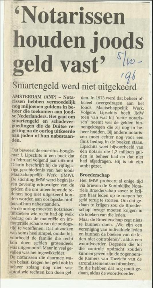 Notarissen houden joods geld vast