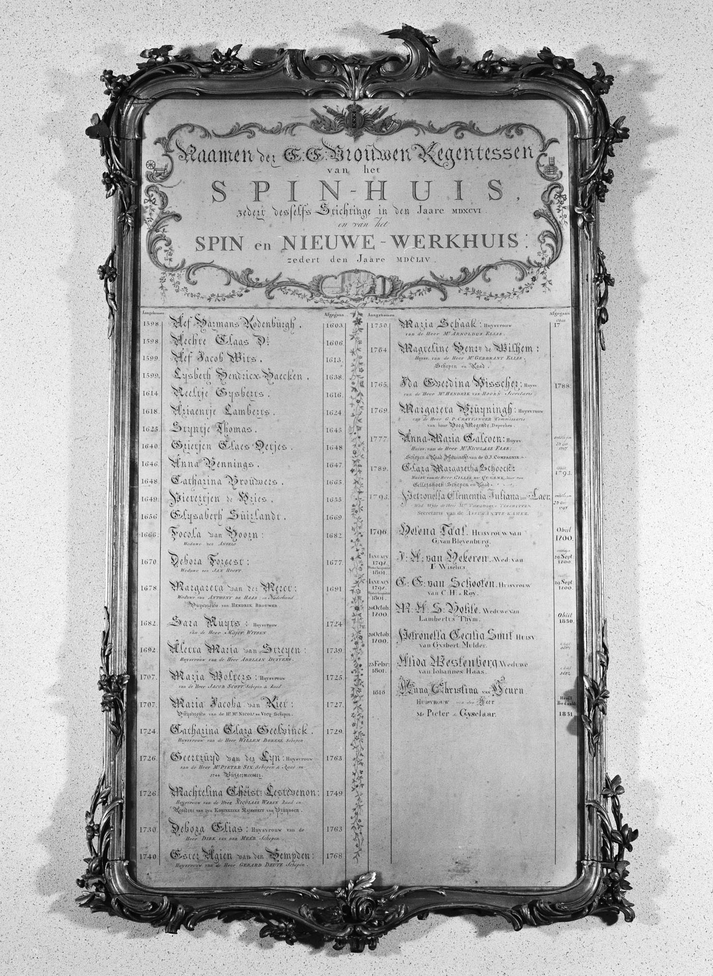 Naamlijst regentessen Spin- en Werkhuis