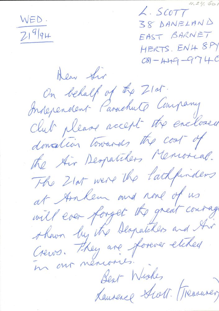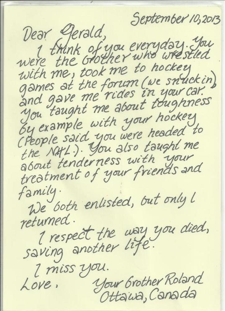 Kopie van een brief met een foto aan Gerald Thauvett...