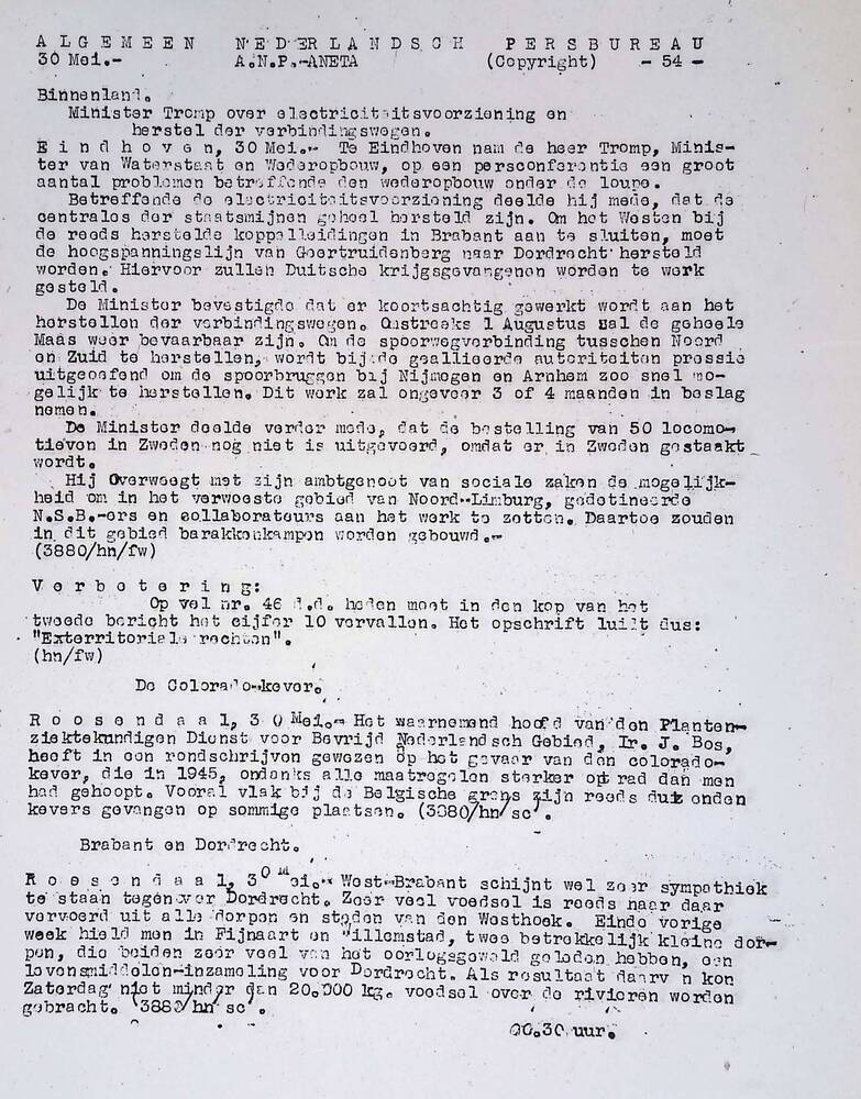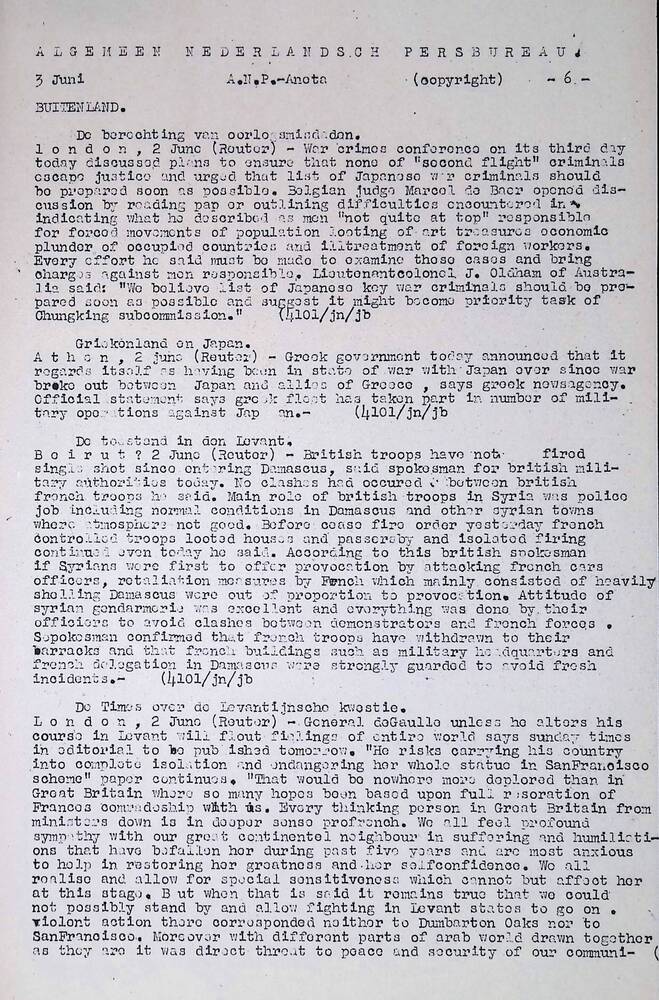 Algemeen Nederlandsch Persbureau, mededelingen, 3 ju...