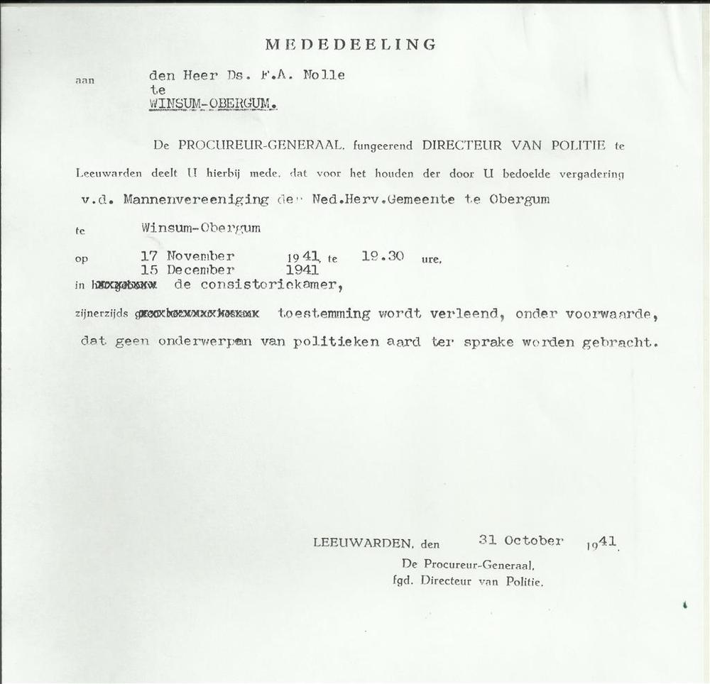 Mededeeling aan den Heer Ds. F.A Molle te Winsum-Obe...