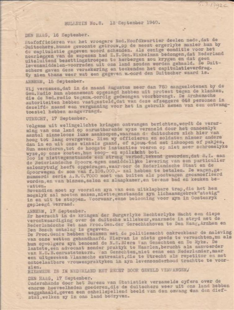 Bulletin No 8 : 18 September 1940 (3e Exemp.)