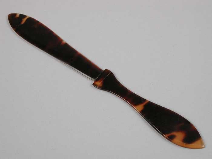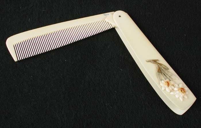 Ivoorwitte celluloid kam, uitklapbaar als zakmes, op...