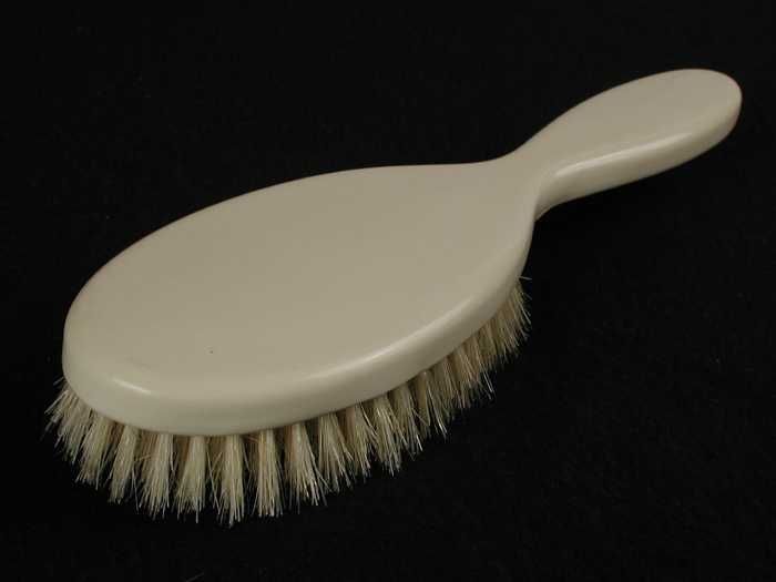 Gelige kunststof haarborstel, been-imitatie, ovale k...