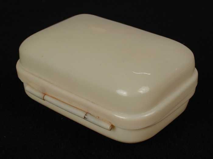 Ivoorwitte celluloid zeepdoos, openklappend door sch...