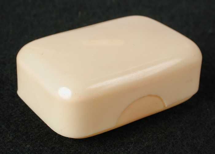 Ivoorwit celluloid zeepdoosje, zeer klein model
