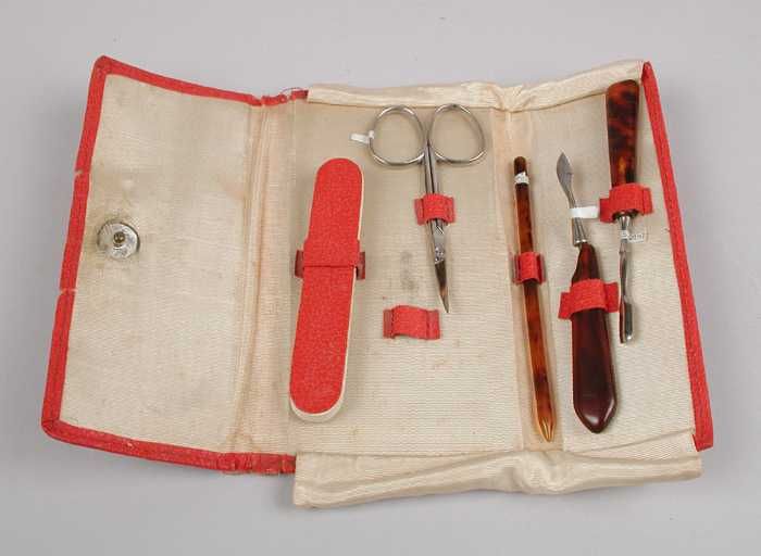 Ivoren nagelgarnituurtje, souvenir, opklapbaar als z...