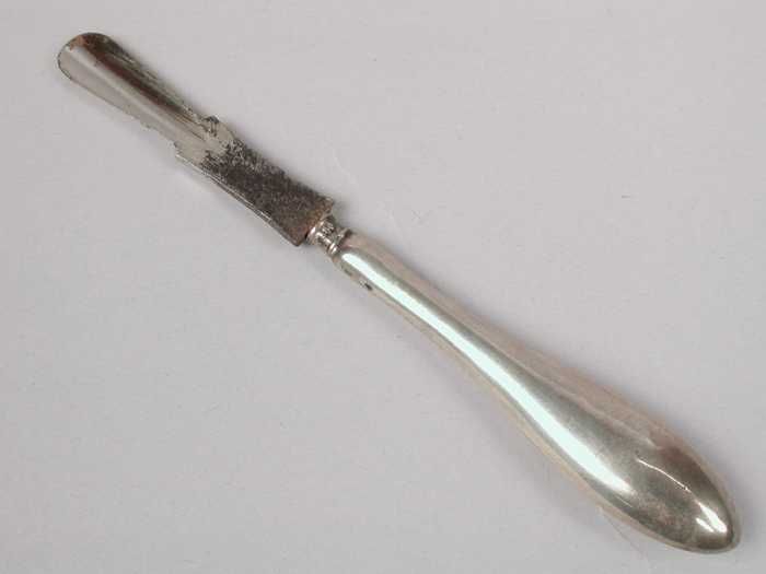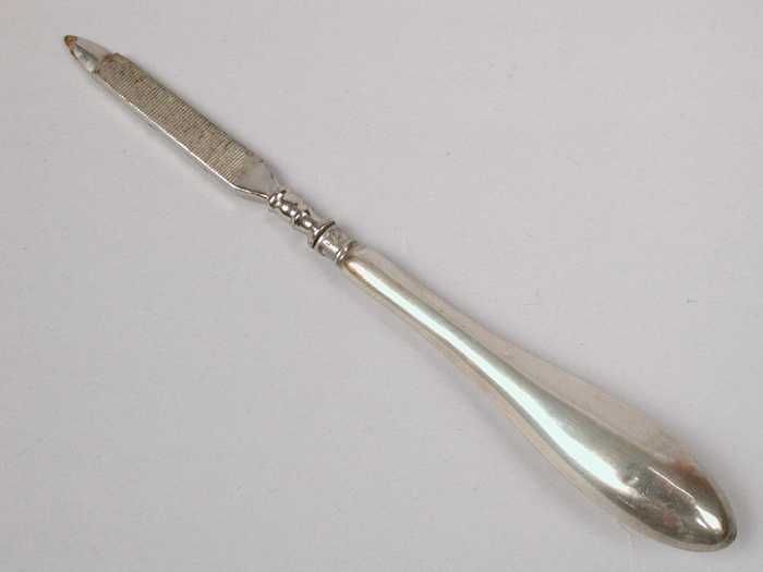 Nagelvijl met zilveren handgreepje, langgerekte drup...