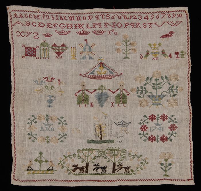 Merklap gewerkt in kruissteek in gekleurd zijde op g...