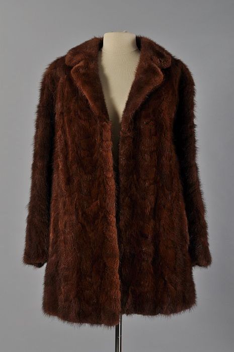 Heuplange bontjas van glanzend roodbruin bont met do...