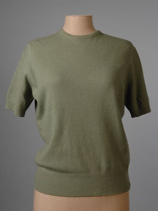 Grijsgroen lamswollen truitje met korte mouwen en ro...