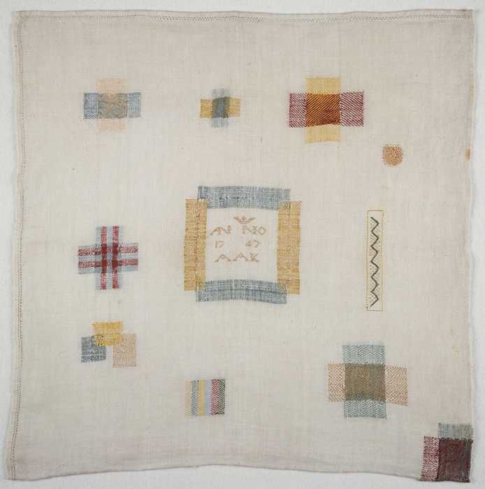 Stoplap gewerkt in gekleurd zijde op gebleekt linnen...